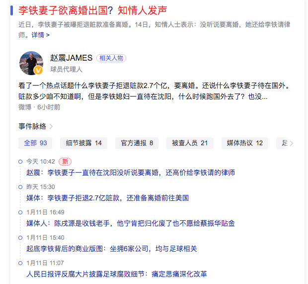 5、李铁妻子在沈阳,并未出国Li Tie’s wife is in Shenyang and has not gone abroad.
