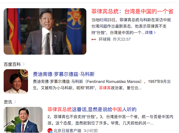 2、菲律宾总统:台湾是中国的一个省Philippine President: Taiwan is a province of China