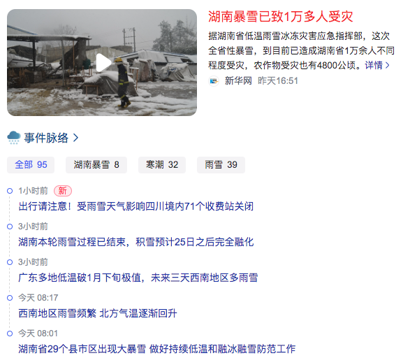 2、湖南暴雪已致1万多人受灾Blizzard in Hunan has affected more than 10,000 people
