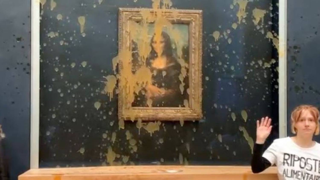 “什么更重要?艺术还是拥有健康和可持续食品系统的权利?” 活动人士用法语喊道。他们躲在安全屏障下,尽可能靠近这幅画,但被卢浮宫保安带走了。