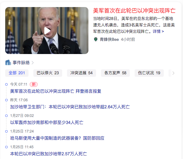 1、美军首次在此轮巴以冲突出现阵亡For the first time, U.S. troops were killed in the Israeli-Palestinian conflict here(约旦东北基地3死)