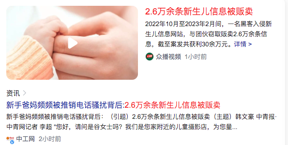 3、2.6万余条新生儿信息被贩卖More than 26,000 pieces of newborn information were trafficked案件告破