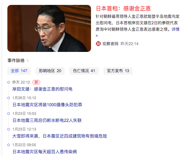 2、日本首相:感谢金正恩地震后致电慰问Japanese Prime Minister: Thank you for Kim Jong-un’s message of condolences after the earthquake
