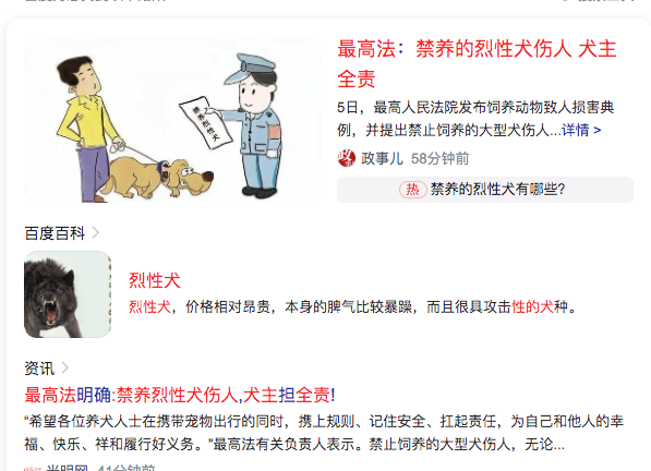 2、最高法:禁养的烈性犬伤人+犬主全责Supreme Court: Banned and violent dogs injure people + dog owners are fully responsible