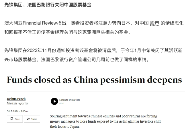 2、先锋集团(Vanguard)与法国巴黎银行(BNB Paribas)关闭了旗下中国股票基金Vanguard and BNB Paribas close China equity funds
