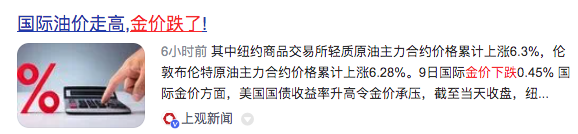 2、国际油价走高,金价跌了International oil prices rise, gold prices fall