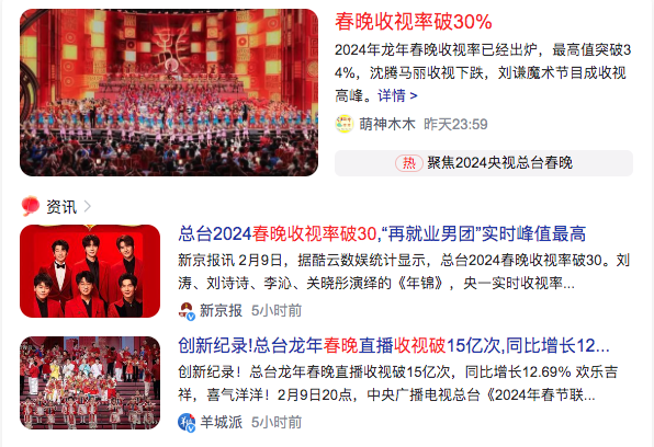 3、春晚收视率破30%The Spring Festival Gala’s ratings exceeded 30%