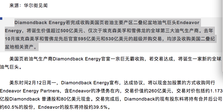4、260亿美元巨无霸收购来了!全球第三大油气巨头将问世The $26 billion Big Mac acquisition is coming! The world’s third largest oil and gas giant will emerge(美国页岩油气生产商Diamondback Energy)