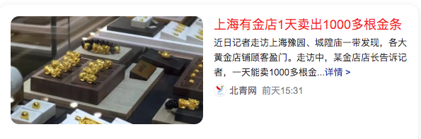 2、上海有金店1天卖出1000多根金条Shanghai Youjin Store sells more than 1,000 gold bars in one day
