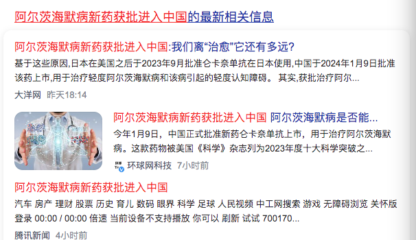 1、阿尔茨海默病新药获批进入中国New Alzheimer’s disease drug approved to enter China