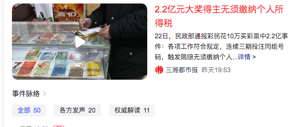 2、2.2亿元大奖得主无须缴纳个人所得税Winners of the NT$220 million grand prize do not have to pay personal income tax(民政部)