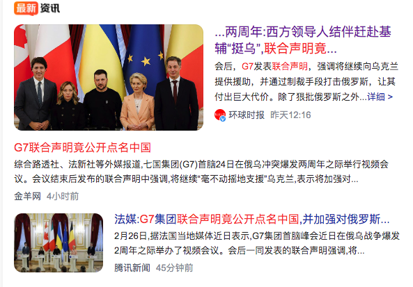 2、G7联合声明竟公开点名中国The G7 joint statement publicly named China