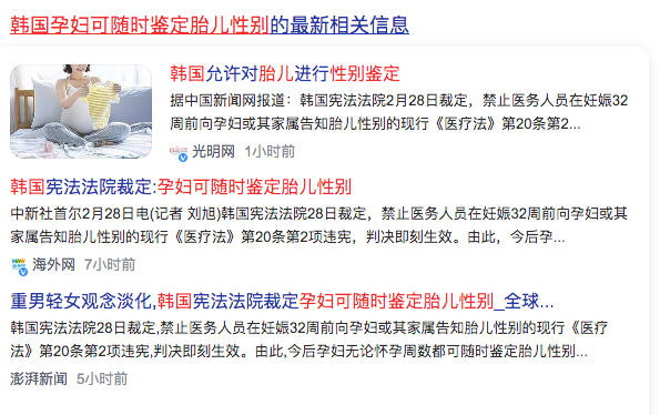 3、韩国孕妇可随时鉴定胎儿性别Pregnant women in South Korea can identify the sex of their fetus at any time