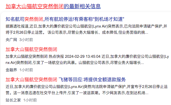 2、加拿大山猫航空突然倒闭Canada Lynx suddenly goes bankrupt