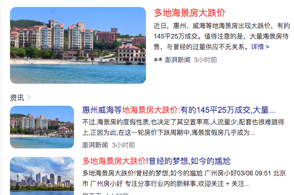 2、多地海景房大跌价Prices of sea view rooms plummet in many places