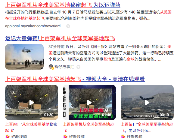 3、上百架军机从全球美军基地起飞Hundreds of military planes take off from US military bases around the world(为以色列运送弹药)