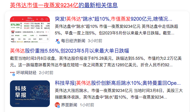 3、英伟达市值一夜蒸发9234亿Nvidia’s market value evaporated by 923.4 billion overnight