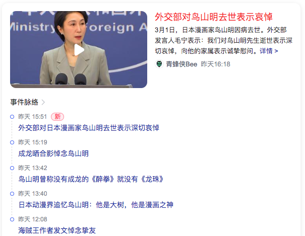 9、外交部(中)对鸟山明去世表示哀悼The Ministry of Foreign Affairs expresses condolences on the death of Akira Toriyama