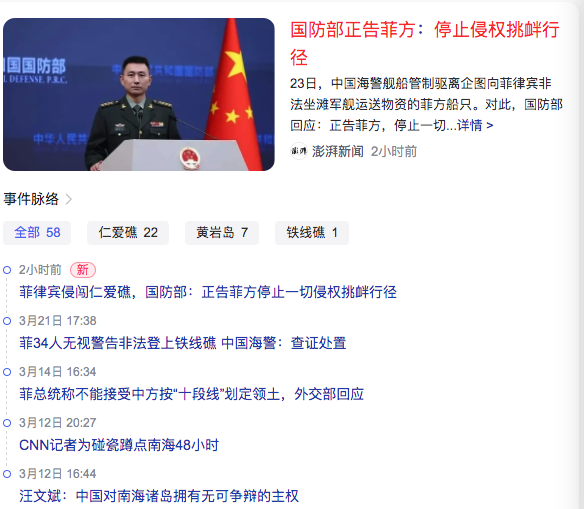 1、菲律宾侵闯仁爱礁,国防部:正告菲方停止一切侵权挑衅行径