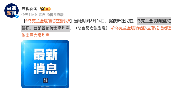 2、乌克兰全境响起防空警报,首都基辅传出爆炸声