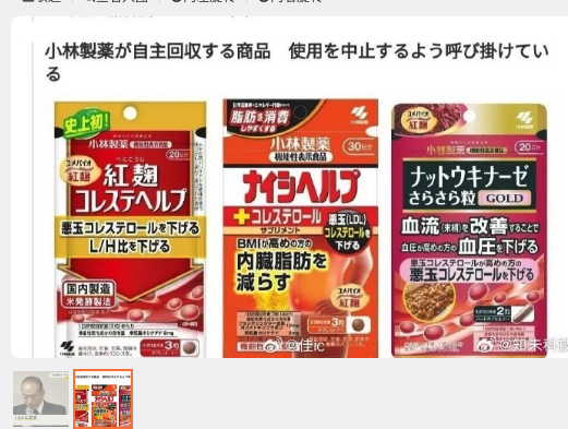 3、据央视财经:3月22日,日本知名药企小林制药公司表示,有部分服用了该公司生产的含有红曲成分保健品的消费者,近期出现了肾脏疾病等症状。鉴于这一状况,公司决定对含有相关成分的3款产品进行召回。据日媒报道,召回数量多达约30万份。
