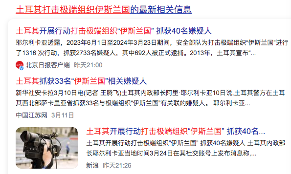 1、土耳其打击极端组织伊斯兰国(抓获40人)