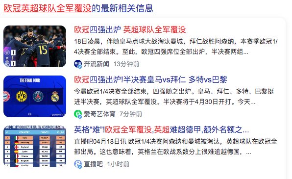 5、欧冠英超球队全军覆没;皇马总比分8-7曼城,拜仁总比分3-2阿森纳进4强