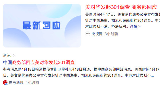 4、美对华发起301调查 中方对此强烈不满,坚决反对