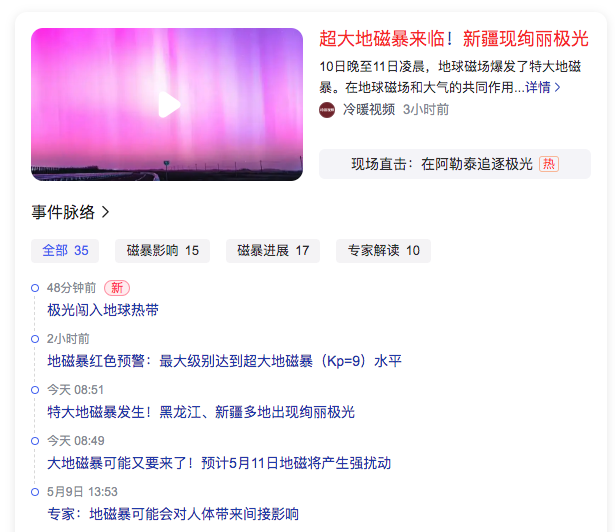 1、超大地磁暴来临!新疆现绚丽极光