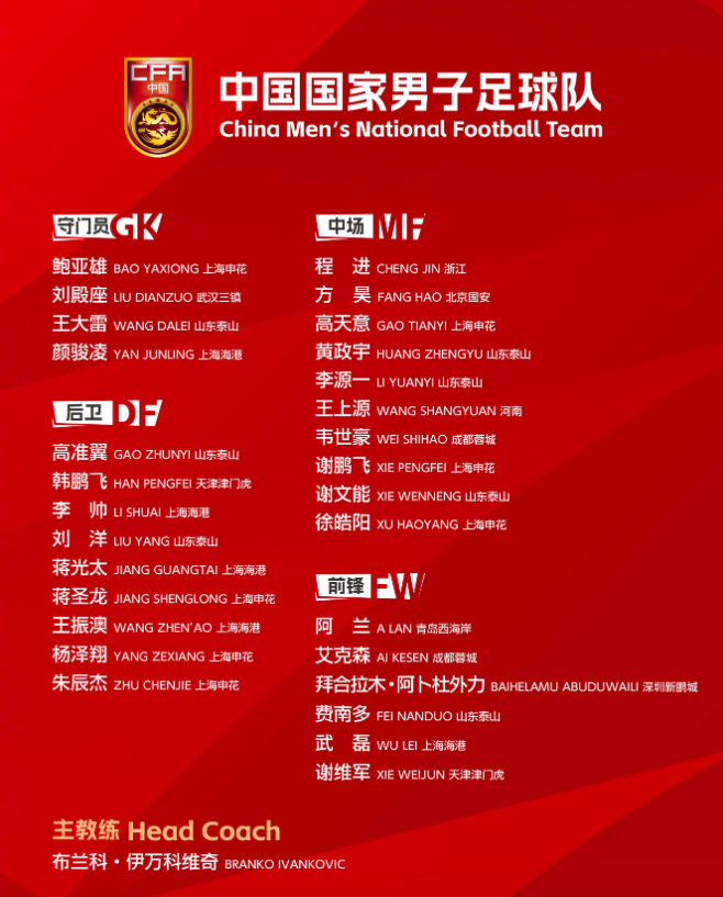 3、国足世预赛29人名单:艾克森、阿兰回归,多位新人入选