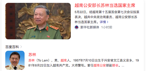 4、越南公安部长苏林当选国家主席