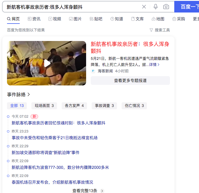 4、新加坡航空SQ321 航班 在从伦敦飞往新加坡的途中遭遇湍流,波音777飞机迫降曼谷,造成 2 人死亡、数十人受伤