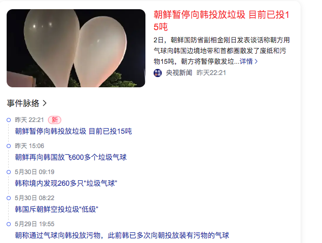 5、朝鲜暂停向韩投放垃圾 目前已投15吨