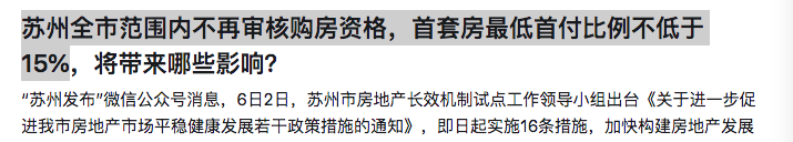 3、苏州全市范围内不再审核购房资格,首套房最低首付比例不低于 15%