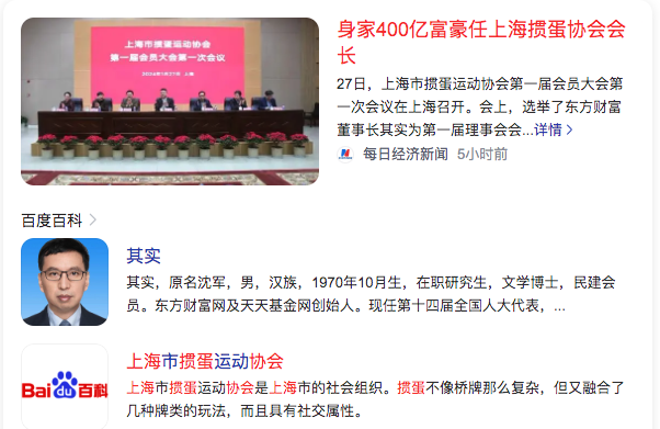 1、身家400亿富豪任上海掼蛋协会会长A billionaire with a net worth of 40 billion is appointed as the president of Shanghai Egg Breaking Association