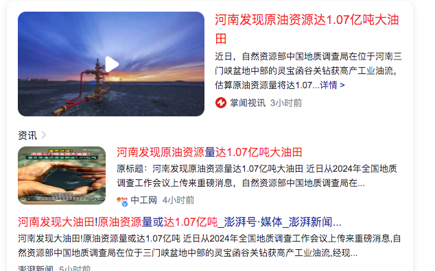 2、河南发现原油资源达1.07亿吨大油田A large oil field with crude oil resources of 107 million tons was discovered in Henan
