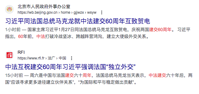 8、中法互祝建交60周年China and France congratulate each other on the 60th anniversary of the establishment of diplomatic relations