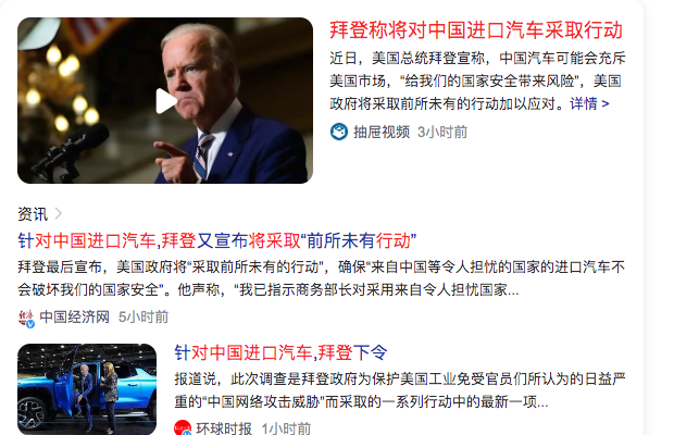 2、拜登称将对中国进口汽车采取行动Biden says he will take action on imported cars from China