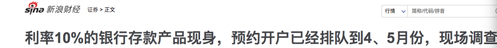 3、多家银行10%利率产品现身Many banks’ 10% interest rate products appear