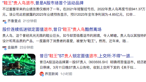 1、鞋王贵人鸟退市Shoe king Guireniao delisted