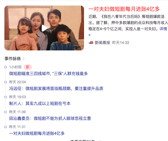5、一对夫妇做短剧每月进账4亿多A couple earns more than 400 million a month from doing short plays