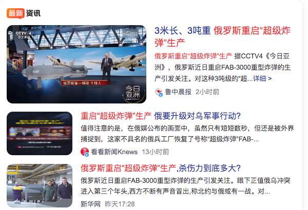 2、俄罗斯重启“超级炸弹”生产;俄媒:“堪比战术核武器”