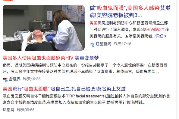 3、美国多人使用吸血鬼面膜感染HIV