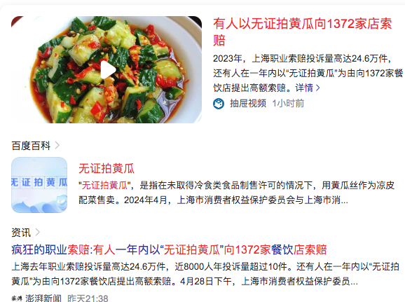 1、有人以无证拍黄瓜向1372家店索赔