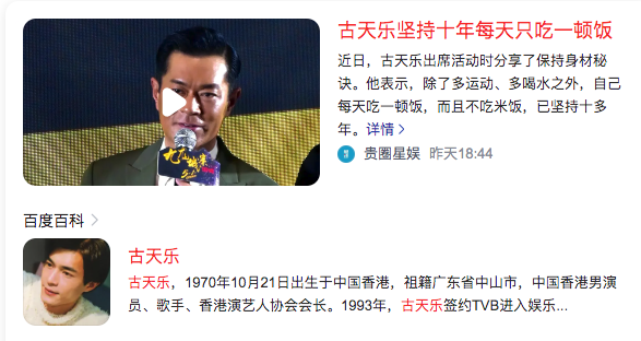 2、古天乐坚持十年每天只吃一顿饭,不吃米饭